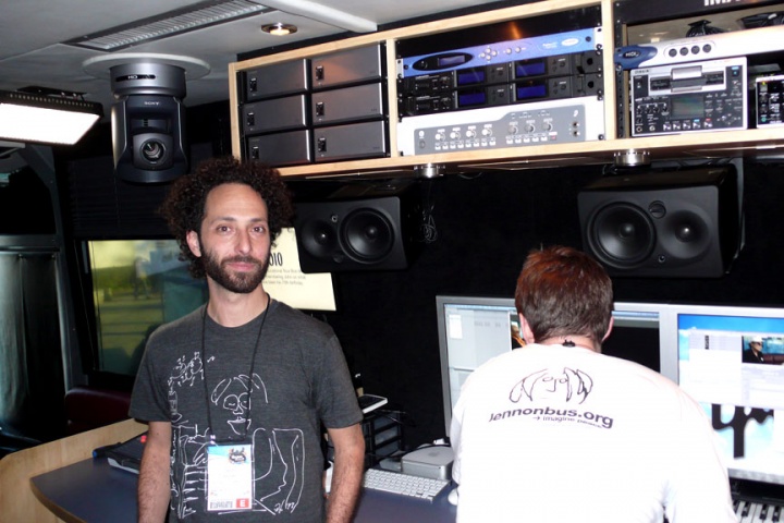 She was followed by fellow proponents of the good cause, Jackson Brown and Quincy Jones. The bus itself is a marvel of advanced audio and video recording technology, complete with the latest in remote camera control and green screen capability (using new fabrics that reflect light in a specific way that reacts with the camera sensors). Chief engineer Jeff Sobel heads up an operation that travels all over, bringing musical vision to students from all walks of life.   lennonbus.org